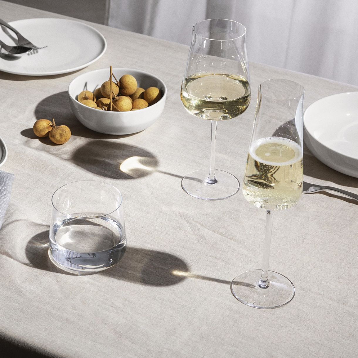 Това е изискана чаша не само визуално. Когато устните ви докоснат стъклото, можете да усетите, че ръбът се издига леко вертикално, прост, но уникален детайл. Това е „Donkaku“, термин на японски, който обозначава тъп ъгъл, избран от Наото Фукасава, за да характеризира всички елементи от колекцията.