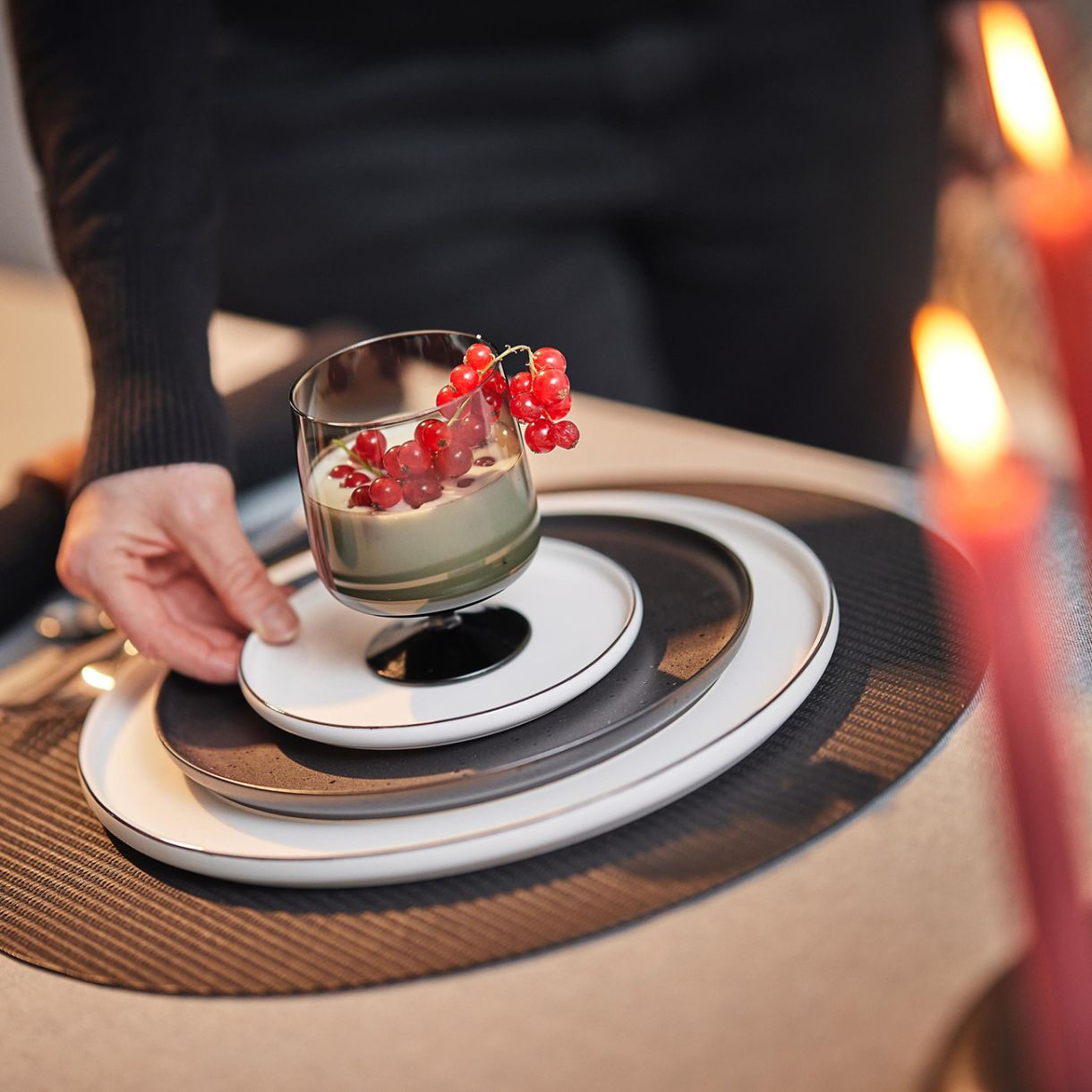Независимо дали става въпрос за аперитив, вино или безалкохолни освежителни напитки като вода или шприцове: чашата с ниско столче с капацитет от 0,200мл не само пасва чудесно в ръката, но също така може да се подреди до четири една в друга, за да спести място. Комбинирайте с гарафите и чашите от същата колекция.