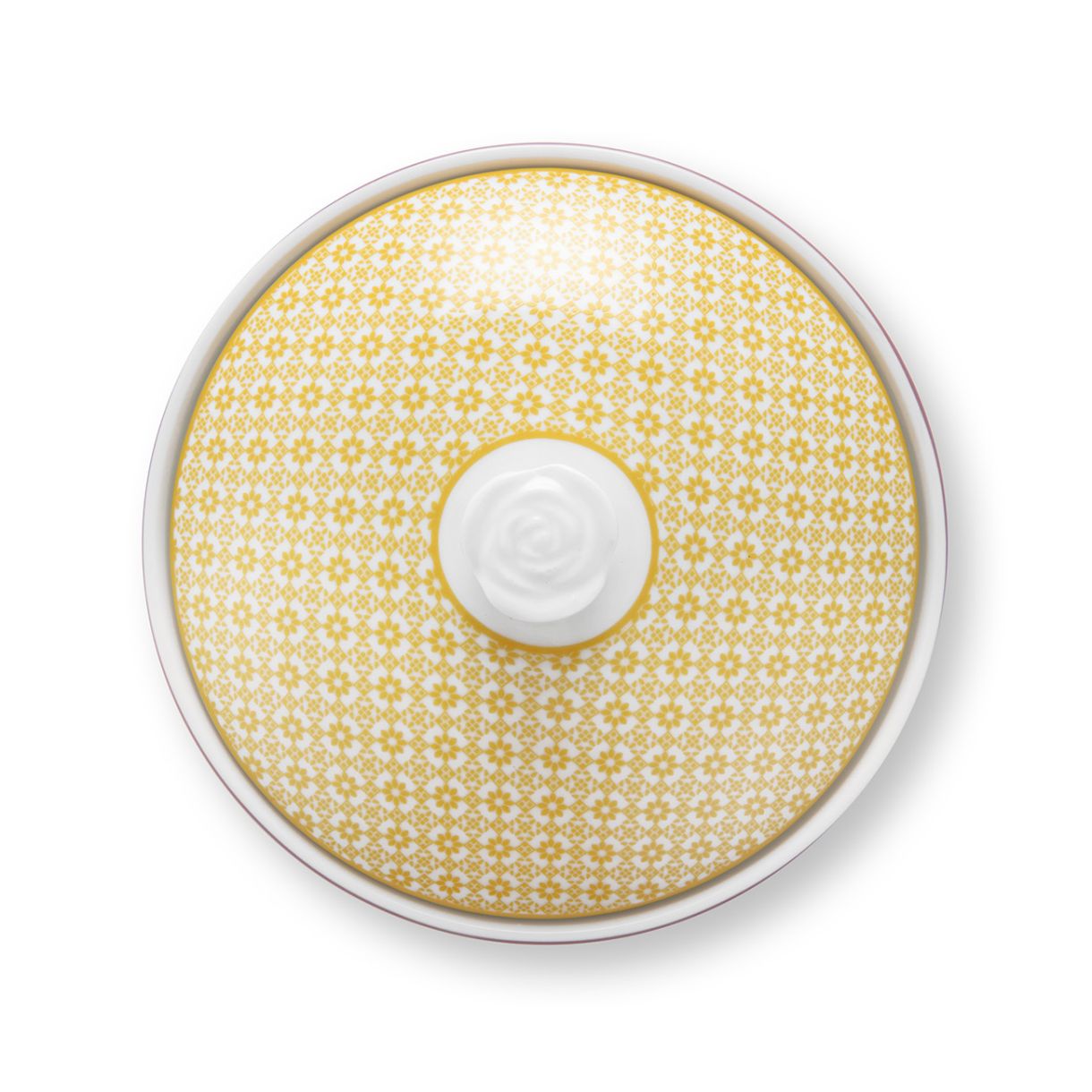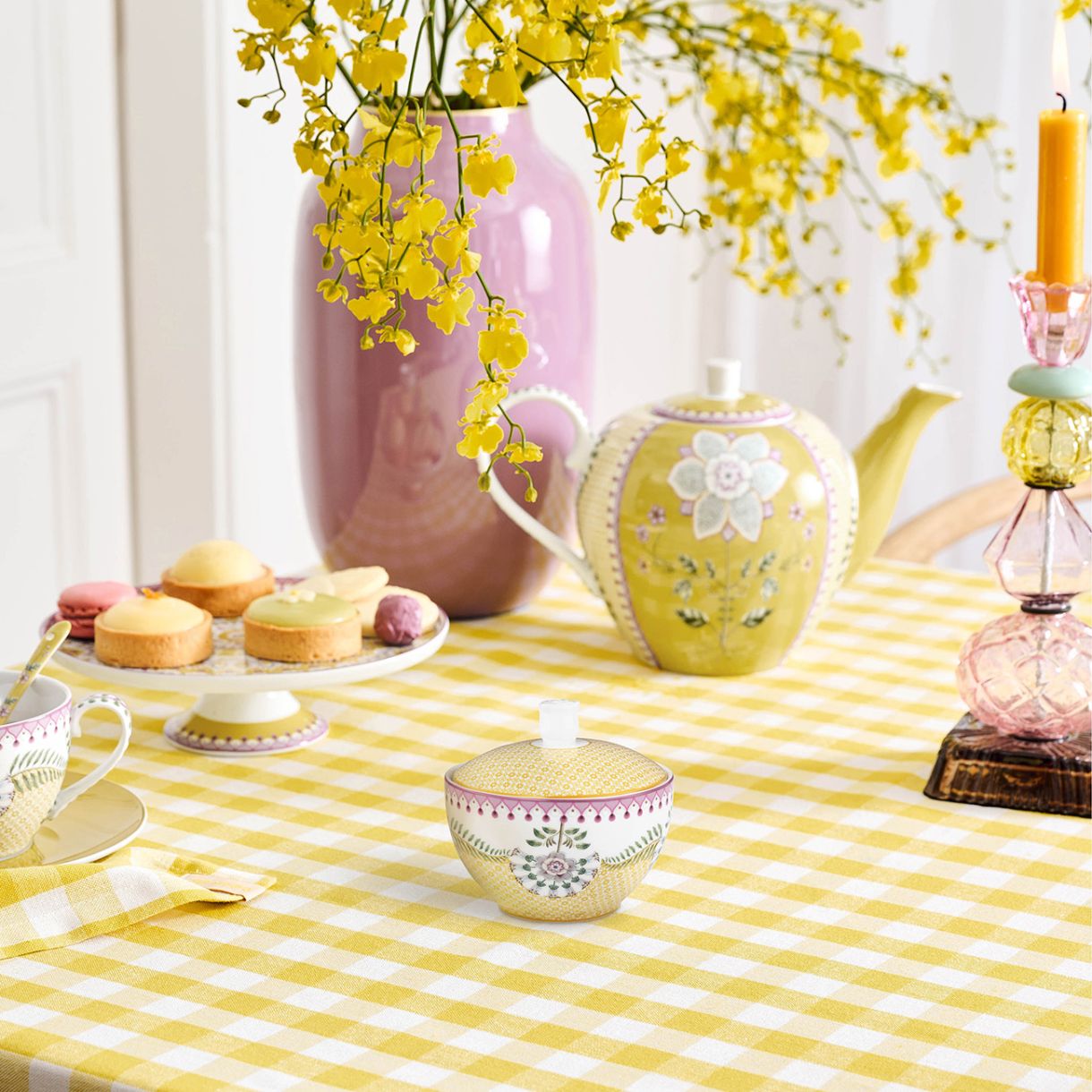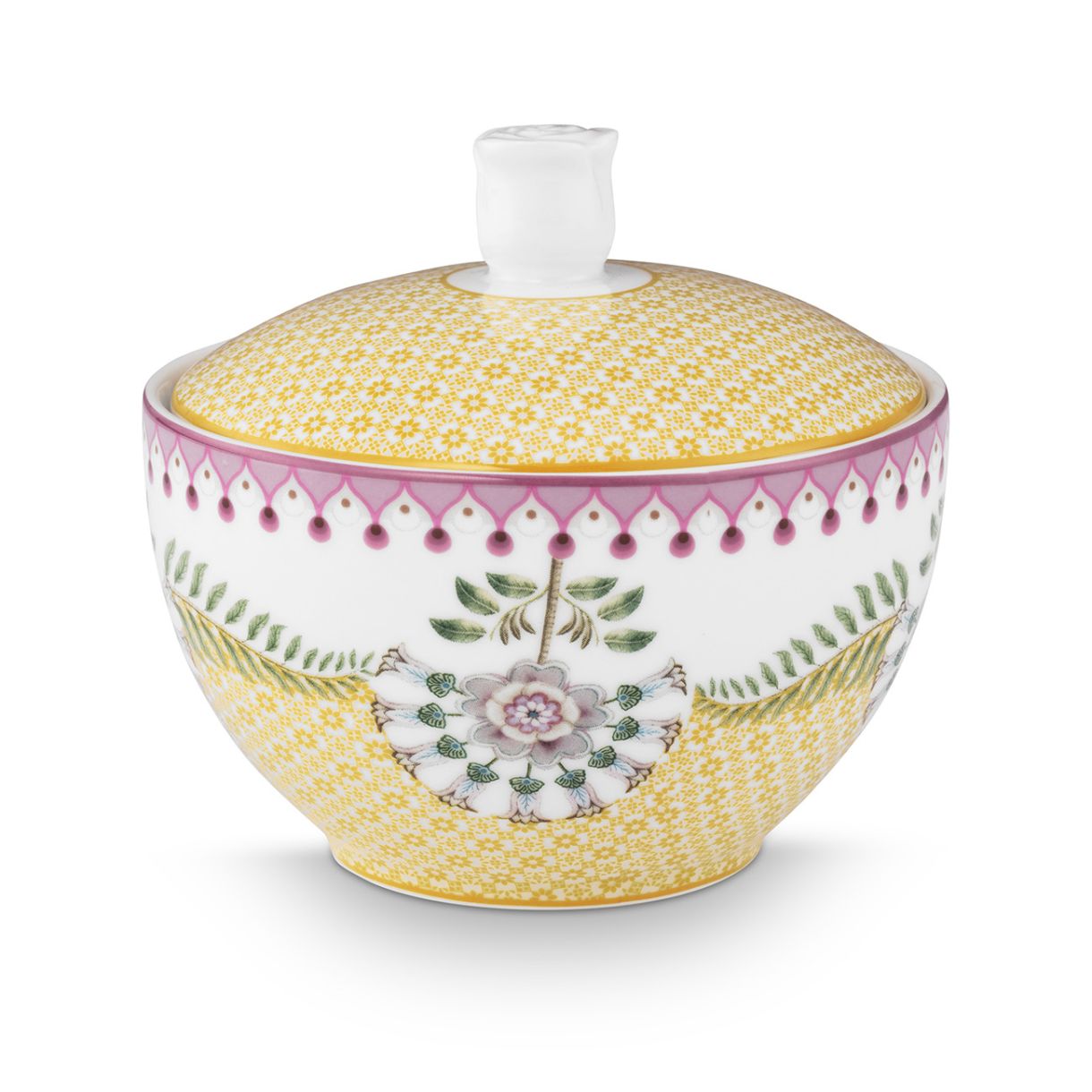 Захарницата е украсена с малки графични цветя. Цветята и грациозните папрати са разположени симетрично, придавайки на тази захарница модерен привкус. Lily & Lotus е първият сервиз за хранене в колекцията на Pip Studio, който може да се мие в съдомиялна машина и да се ползва в микровълнова фурна.